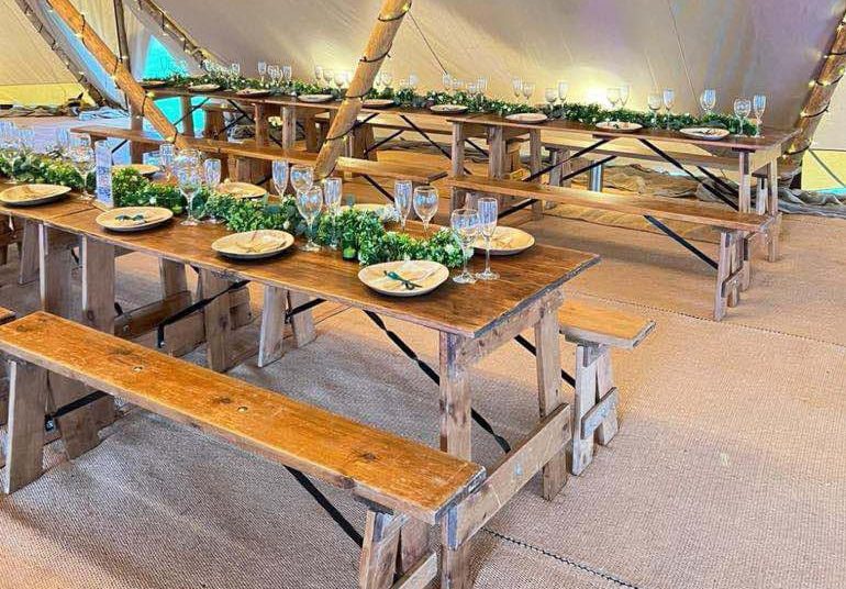 - Rustic Tables & Benches (for inside/outside use).